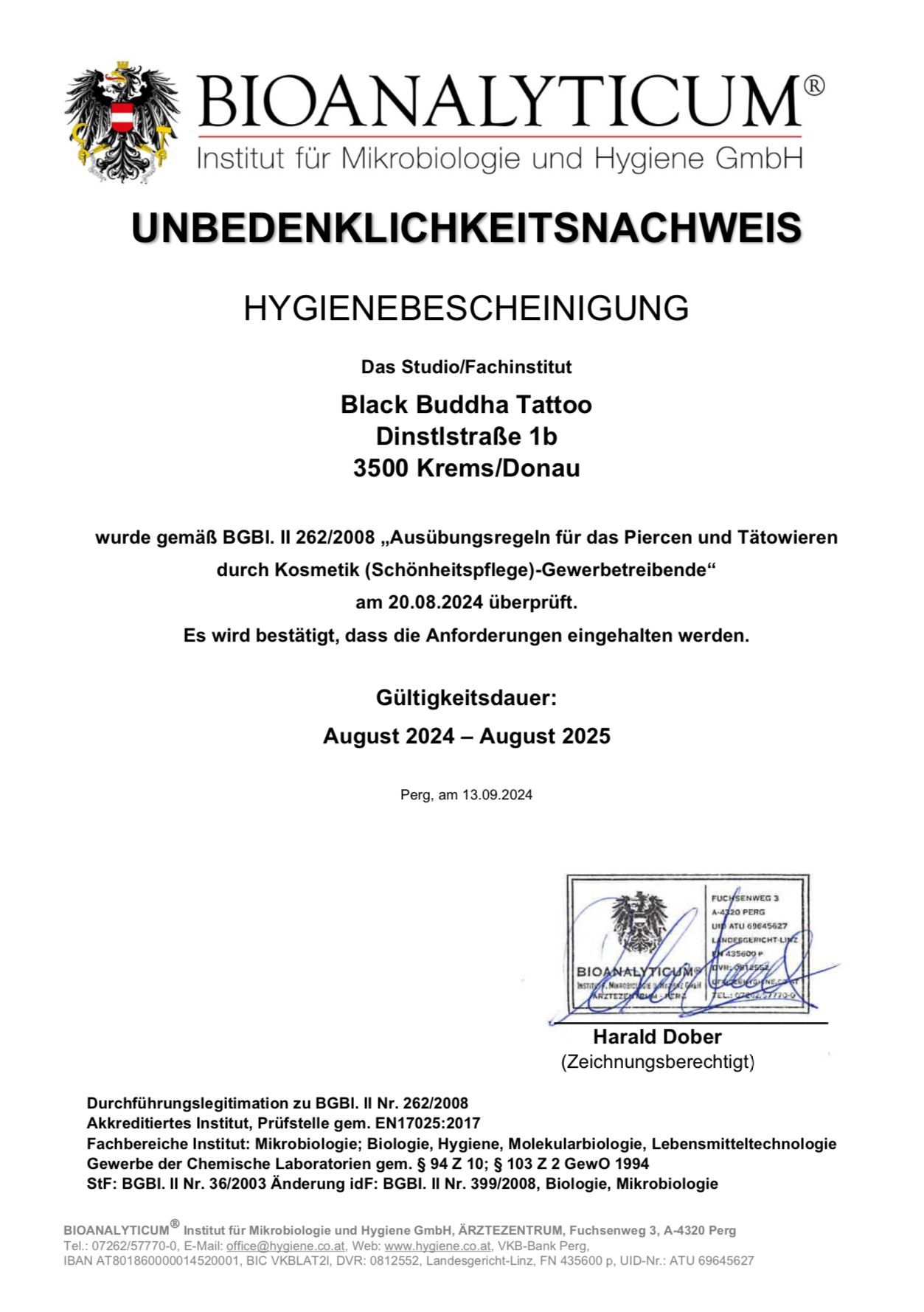 Unsere Termine sind in 20 Minuten Blöcken eingeteilt, somit bitten wir dich immer 5 Minuten vor deinem Termin zu erscheinen. Solltest du dich verspäten, dann gib uns bitte umgehend telefonisch unter 0677 614 685 19 bescheid! Wenn du mehr als 10 Minuten später kommst oder durch deine Verspätung der Termin nicht mehr ordentlich durchgeführt werden kann (Qualität benötigt Zeit, ein Husch Pfusch gibts bei uns nicht!) muss der Termin ggf verschoben werden um dir an einem anderen Zeitpunkt dennoch die Qualität an Piercings bieten zu können.